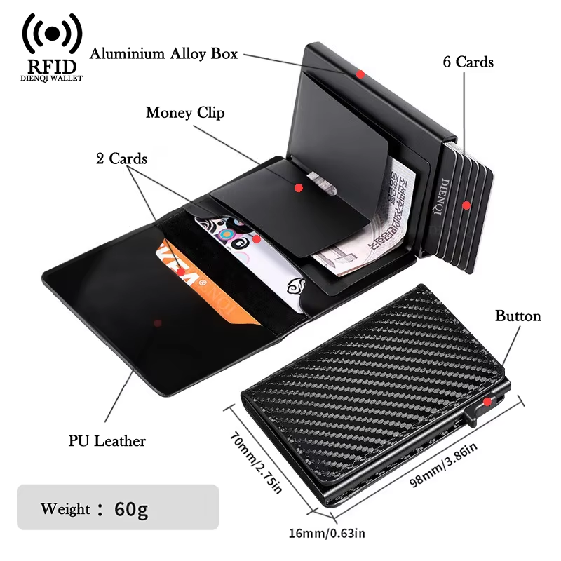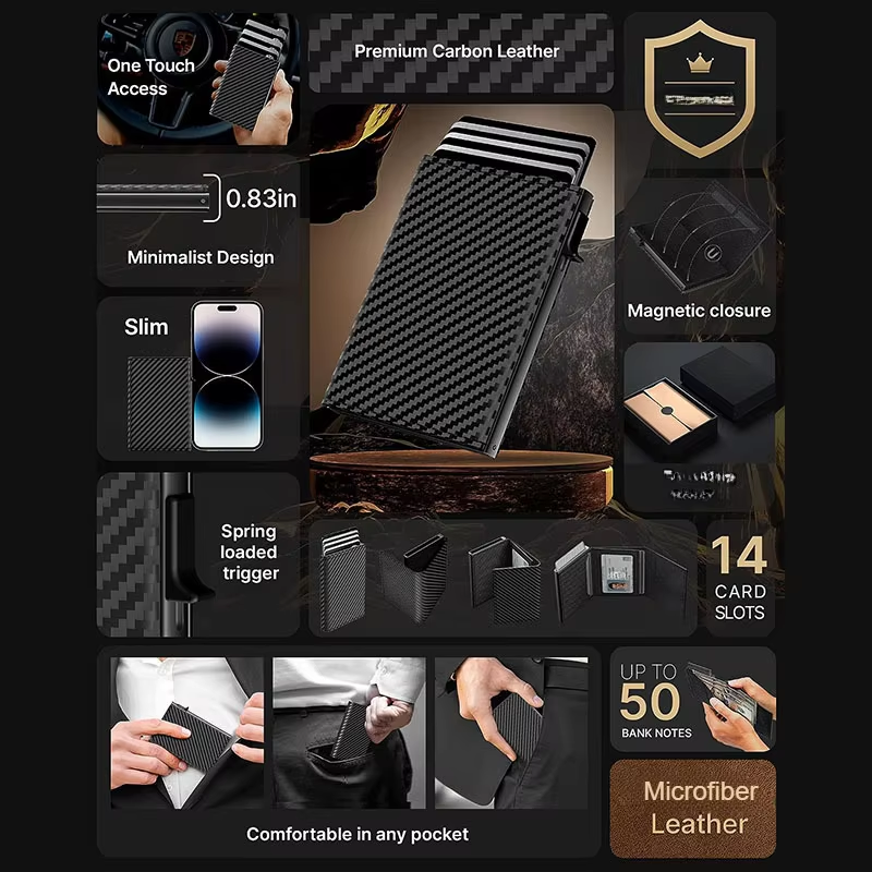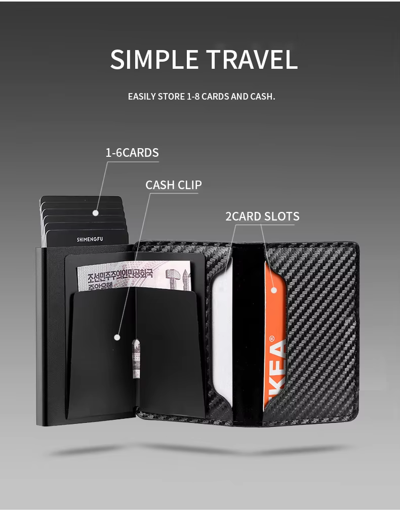 QUICK-ACCESS POP-UP MECHANISM - With a simple push of a button, your cards are neatly spread out, giving you instant access to the card you need without having to search through a traditional wallet. This streamlines your daily payments and transactions.
