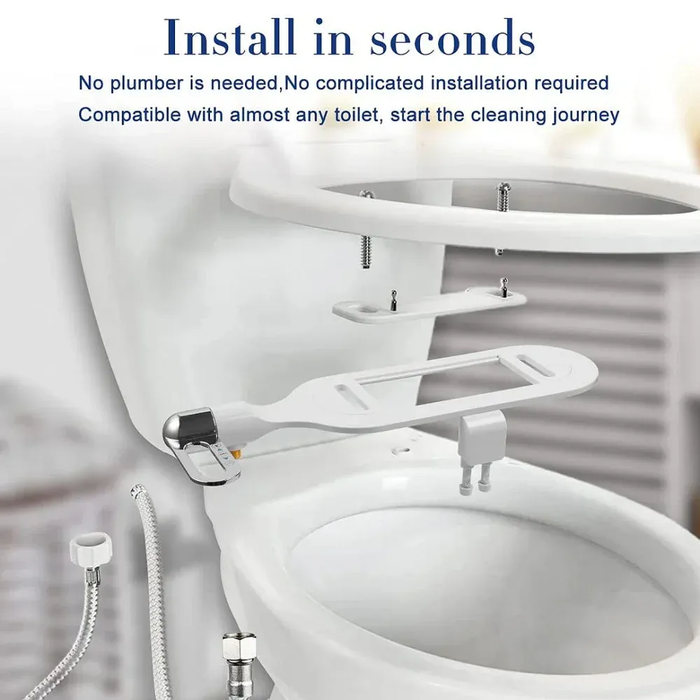 【Ultra-Slim-Adjustable Pressure Bidet】This bidet toilet seat attachment is only 0.24 in thin and can keep your toilet seat level. The water pressure control knob allows you to adjust the water pressure, creating a comfortable and easy-to-use experience, Gentler cleaning for those suffering from hemorrhoids or other conditions that lead to irritation and pain when visiting the bathroom, which is convenient for the elderly and people with mobility impairments to enjoy a perfectly healthy life.