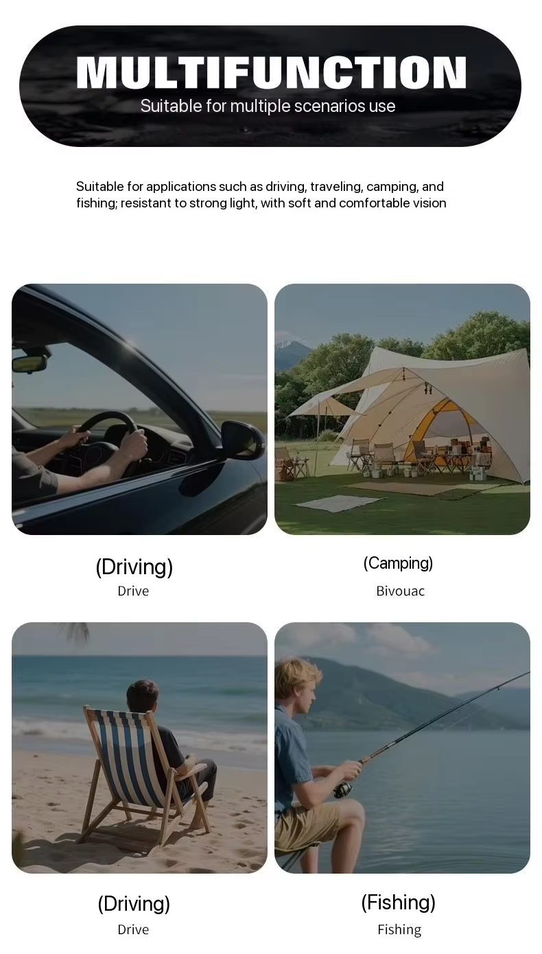 • Usage : Suitable for outdoor activities, such as fishing, hiking, and driving