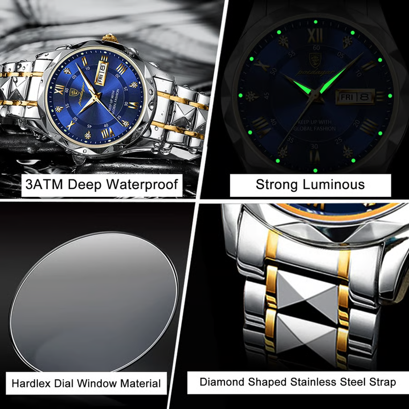 Luxury Watches for Men Day Date Luminous Waterproof & FUNCTION & day date calendar window for men which can know the date and arrange yourself daily work - Efficient and fast work/ Light Green Luminous - Watch pointers can glow in the dark/ Easy to read/ With a adjustable Tool freely to adjust watch band within 8.7inch/ shockproof/ 3ATM water resistant up to 30 meters , handwash,swimming,daily use waterproof.
