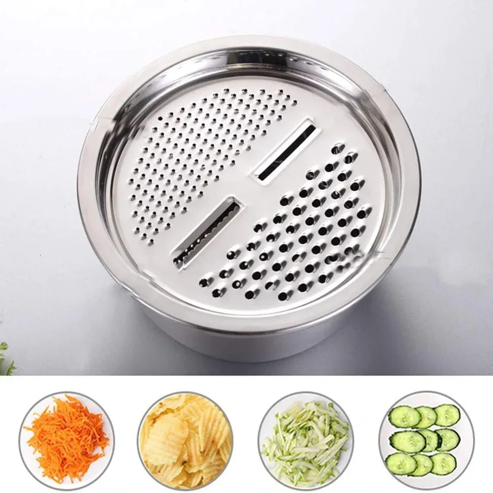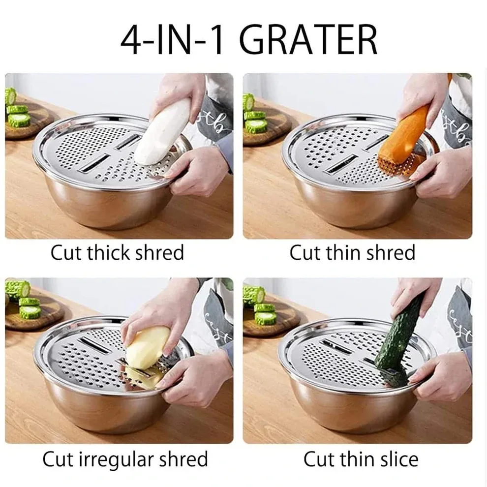Grate, slice, and drain all in one compact set – perfect for busy kitchens! Made with high-quality stainless steel, it's rust-resistant, dishwasher safe, and designed for effortless use and storage.