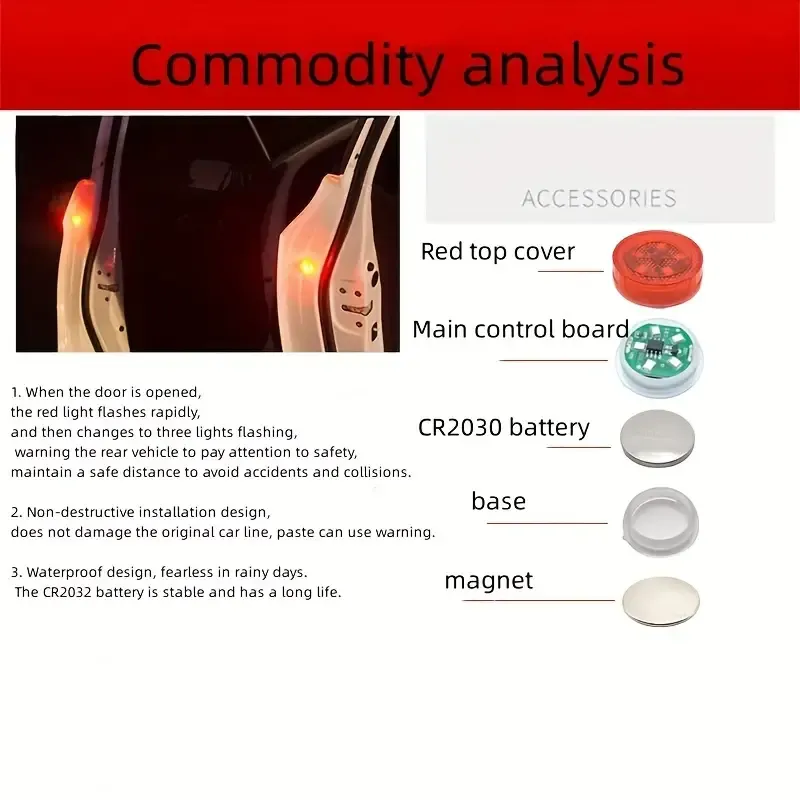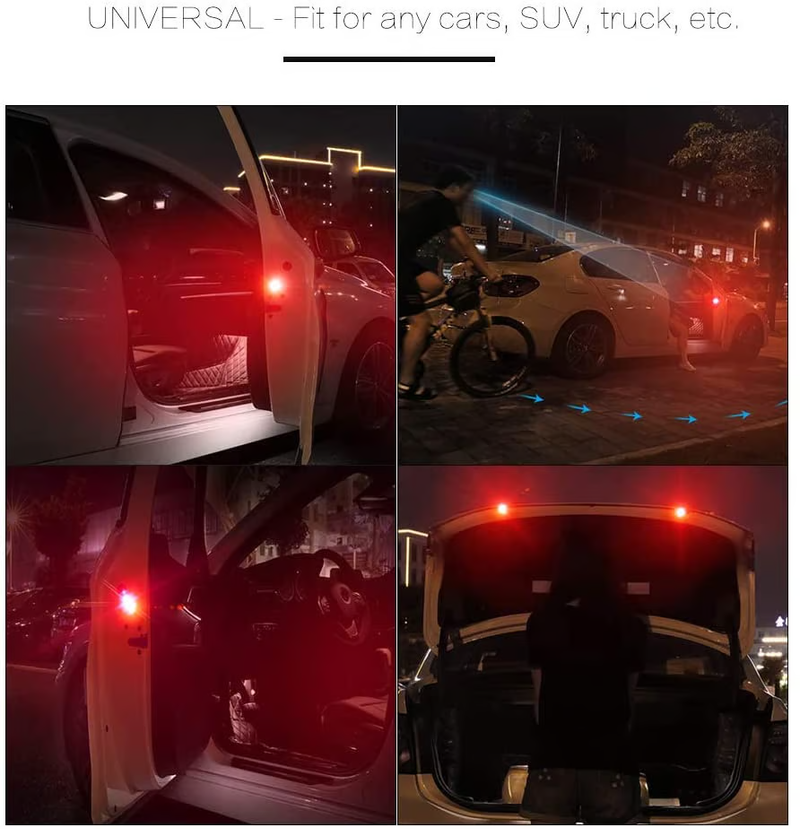 - [Strong warning signal]: The door warning light is red. Its brightness is very high, which can remind passers-by to avoid accidents and rear-end collisions. Reminder: Our packaging is 2Pcs/set, we strongly recommend that you order 4Pcs/2 sets to get better results.