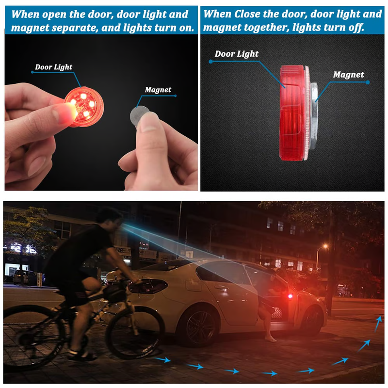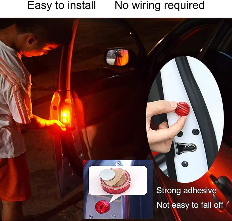 - [Easy to use]: The door warning light is designed with self-adhesive tape, just peel it off and paste it on the edge of the door without any modification or wire connection.