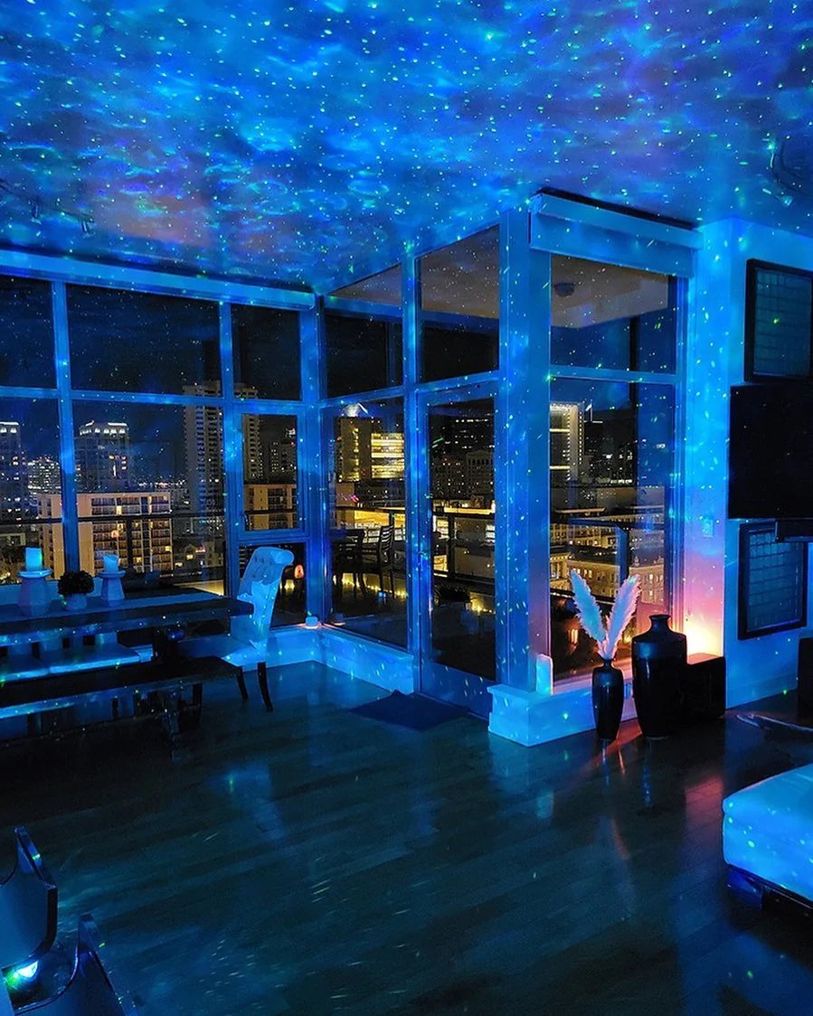 The Galaxy projector transforms any room into its own planetarium, creating a pleasant and calming ambience.