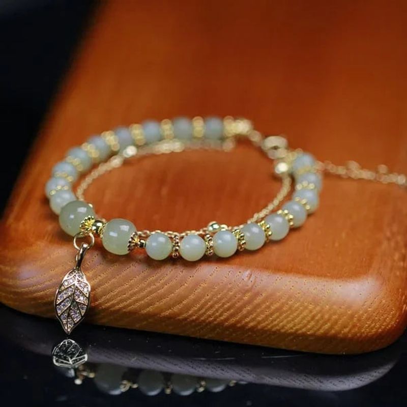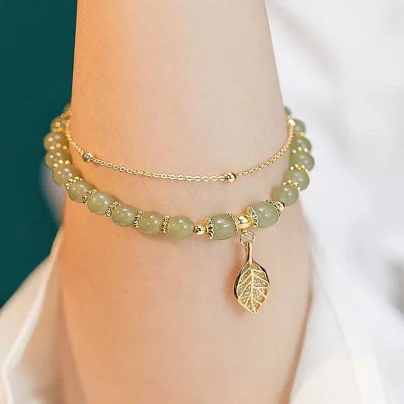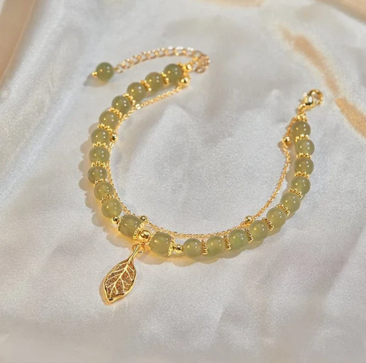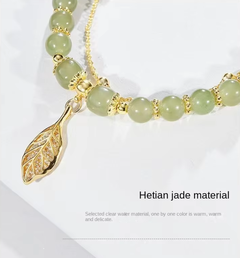🔥 golden branches and jade leaves Lucky Wada Jade gold leaf bracelet