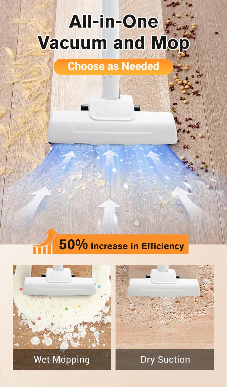 2000mAh rechargeable batteries provide up to 30 minutes of uninterrupted cleaning, satisfying long-term cleaning needs. The cordless design makes it easy to move around without having to worry about getting tangled in wires.