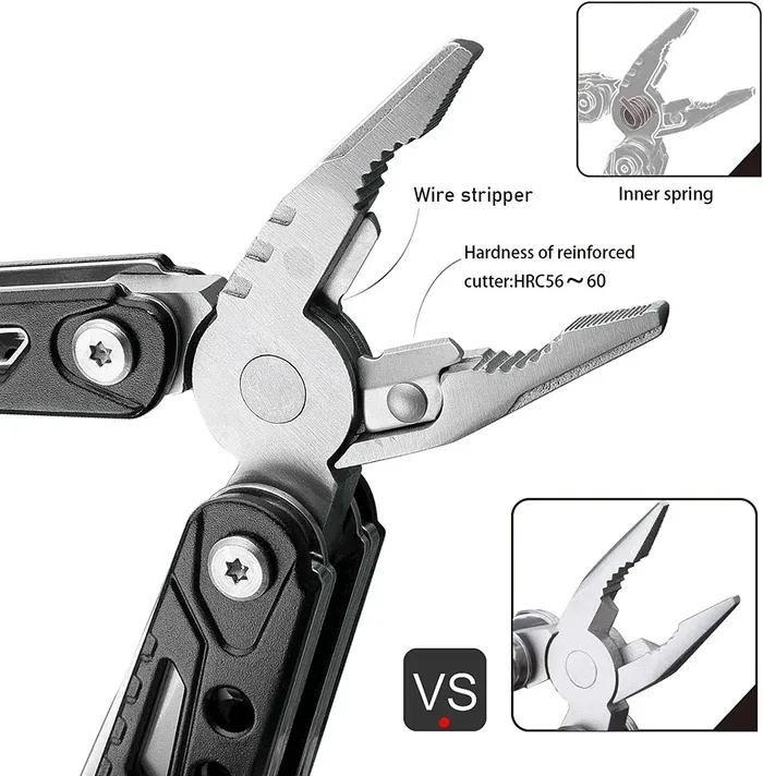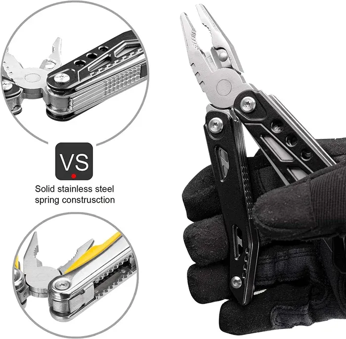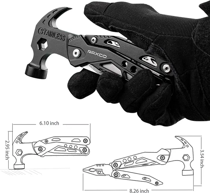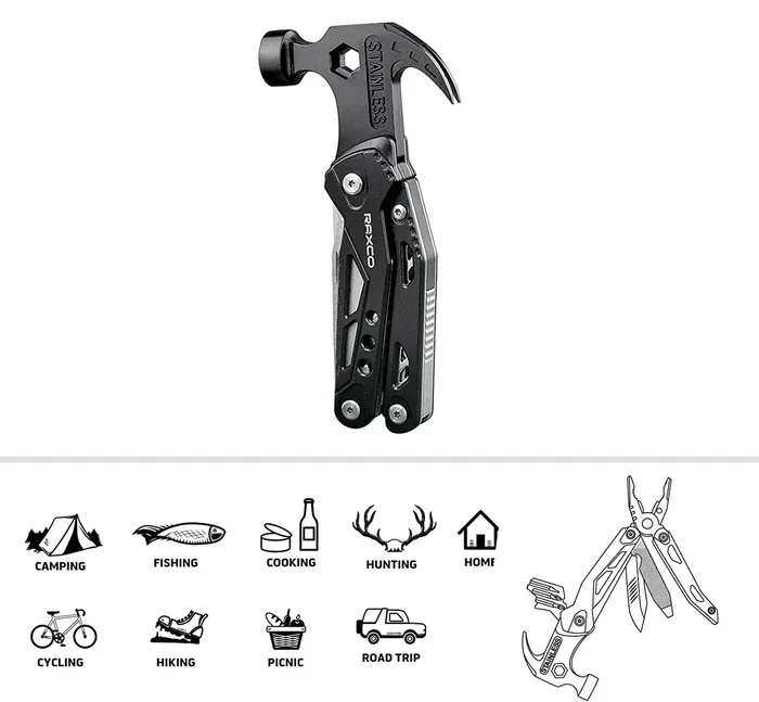 Our multitool hammer is made of high-quality stainless steel and aluminium,which is durable, rust-proof and easy to use. The rust-proof and anti-corrosion high-quality steel help it last longer. Each part is carefully crafted, please rest assured to use it. We have installed a safety Locking Mechanism to ensure that the tool is locked in place during use, and must be manually unlocked to ensure safe storage under your safety.